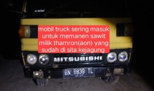 Sebuah mobil truk dengan nomor polisi BN 8839 TL disebut-sebut kerap keluar masuk lokasi untuk mengangkut hasil panen sawit. Aktivitas ini dinilai janggal, sebab secara hukum, seluruh hasil dari lahan sitaan seharusnya berada dalam pengawasan negara dan tidak boleh dimanfaatkan secara bebas.