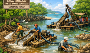 Bangka–Kawasan hutan bakau pantai Takari kabupaten Bangka kembali menjadi saksi bisu dari tindakan merusak lingkungan, kali ini oleh puluhan ponton tambang timah.