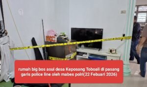 Dan pada tanggal 22 Febuari 2026 team mabes polri langsung memasang garis police line dirumah big bos asui desa Keposang Toboali,aset dirumah tersebut di pasang garis police line seperti mobil mewah milik bos asui.(Citra)